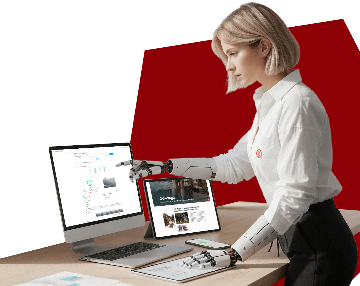 Ten proces obejmuje strategie SXO, łączące stworzenie i optymalizację strony internetowej aby była wygodna oraz wiarygodna dla użytkowników a następnie wysokie jej pozycjonowanie w miejscach gdzie są Twoi klienci.